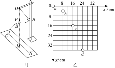 19.我国航天事业创造了以“两弹一星”、载人航天、月球探测,火星探测等为代表的辉煌成就.在某星球上用如图甲所示的装置“探究平抛运动的特点”.悬点O正下方P点处有水平放置的炽热电热丝,当悬线摆至电热丝处时能轻易被烧断,小球由于惯性向前飞出做平抛运动.现对小球采用频闪数码照相机连续拍摄,在有坐标纸的背景屏前,拍下了小球在做平抛运动过程中的多张照片,经合成后,照片如图乙所示.a、b、c,d为连续四次拍下的小球位置,已知照相机连续拍照的时间间隔是0.10s,照片如图乙中坐标所示,则: