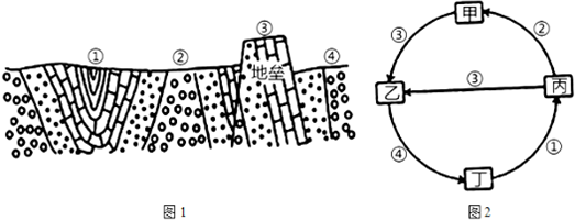4.图1为某同学野外地质考察绘制的某地区地质构造示意图。图2为地壳物质循环简图,据此完成11~13题。