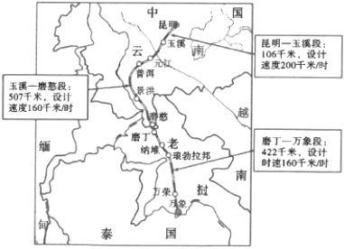 2.榴莲是热带水果,因口味独特、营养价值高而获消费者青睐,原产地、主产地均在东南亚,在全世界均有销售。常温状态下,熟透榴莲的保质期为3天至5天。2021年12月开通的中老铁路,让东南亚榴莲运输成本、耗时进一步降低,给东南亚榴莲畅销中国带来多重利好。如图为中老铁路示意图。据此完成1~3题。