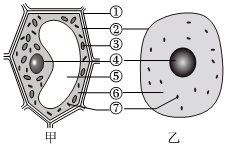 (1)上图表示植物细胞的是细胞(填甲或乙)。
