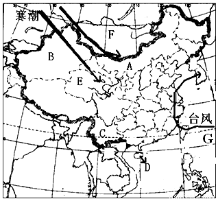 (1)寒潮是冬半年影响我国的主要灾害性天气,多源于西伯利亚及F国。