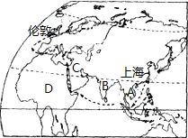 (1)上海比伦敦纬度位置低.