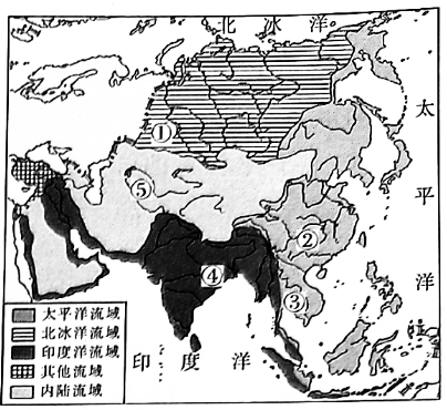16.亚洲被誉为“巨河之洲”。结合亚洲主要水系图,完成下列问题。