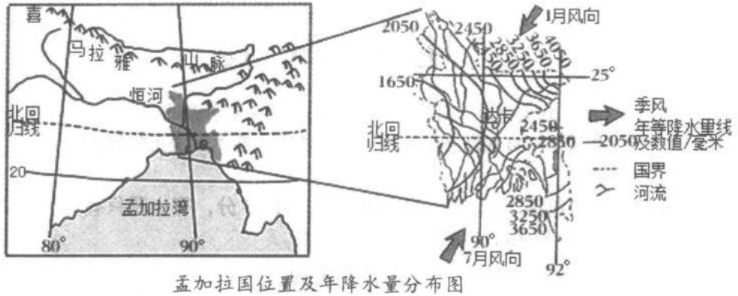 13.孟加拉国被人称为“水泽之乡”和“河塘之国”,是世界上河流最稠密的国家之一。读图,完成13~15题。