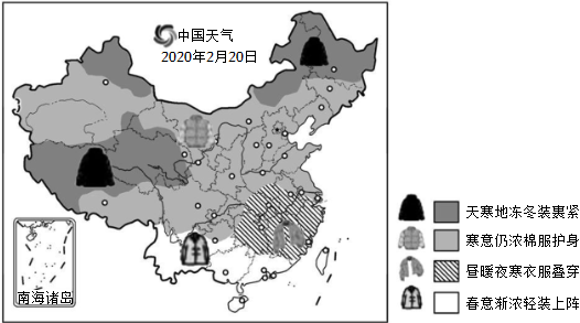 3.2月乍暖还寒之时,中国天气网发布了全国穿衣指南地图。读图,完成33~35题。