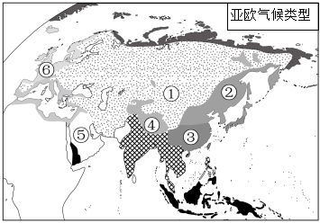 16.如图为“亚洲气候分布图”,读图,回答下列问题。