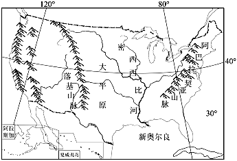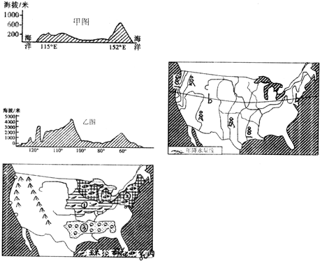(1)在地形剖面图甲和乙中,能反映美国地形特点的是.