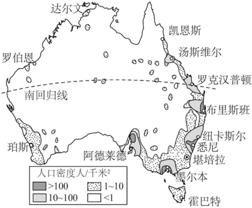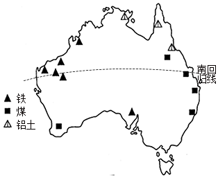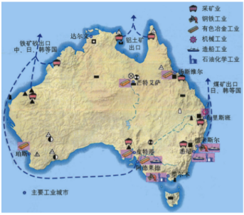 15.全球十大“矿业巨头”中,有九家在澳大利亚有业务往来。必和必拓公司(BHP)是澳大利亚著名的矿业公司,总部位于墨尔本。读澳大利亚矿产和城市分布示意图,完成下列5~7题。