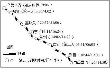 7.暑假期间,小力同学与父母一起乘坐T306次列车从南昌到新疆旅游。如图示意T306次列车南昌至乌鲁木齐段主要站点及列车时刻。读图完成12~13题。
