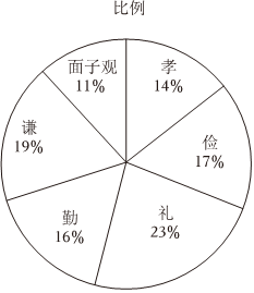 【说明】孝:孝顺父母是做人的基本要求;俭:过日子能省则省;礼:对别人要以礼相待;勤:辛勤的劳动是取得成功的前提;谦:遇到别人的夸奖要表现得谦虚;面子观:孩子的成功就是给父母挣面子。