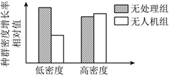 20.高原鼠兔是青藏高原上分布最广泛的一种小型植食性哺乳动物,其挖洞造丘、啃食牧草可能引起草地退化。科研人员利用仿生无人机模拟高原鼠兔的捕食者,研究捕食风险对某草地不同种群密度高原鼠兔的影响,实验结果如图。