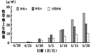 21.某半干旱地区学校的课外活动小组,为了研究不同厚度的积雪融化后对牧草生长量的影响,选了一块试验地.根据积雪厚度来设计,在该试验地设计了同面积的两种样地和一个对照样地.样地A:积雪厚度30cm;样地B:积雪厚度10cm,对照样地:无积雪区(通过人工处理).下面为一段时期的实验结果对比图(图).据此完成7~9题.