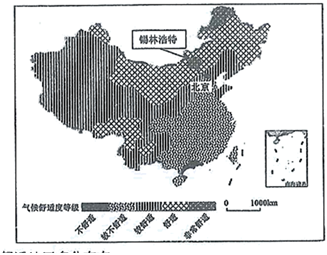 14.人们通常把温湿指数、风寒指数和着衣指数作为气候舒适度的评价指标,从而绘出我国夏季气候舒适度分布示意图(如图)。据此完成13~14题。