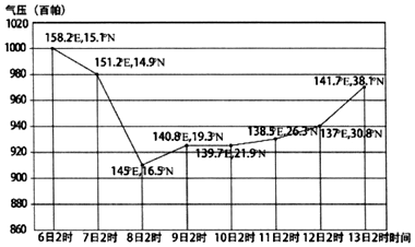 7.2019年10月12日,某天气系统影响日本,造成了重大损失。如图为该天气系统经过的部分地点及经过时的中心气压图。据此回答11~12题。