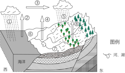 26.2017年,长春市首个“海绵公园”--劳谦公园建设完成,整个公园充分体现了“海绵城市”的渗、滞、蓄、净、用、排等功能。雨水通过透水铺装、生态植草沟和雨水花园等下渗,再经过地下的过滤装置过滤,实现雨污分开,干净的水被收集储存,用于植物的灌溉养护。如图为水循环部分环节示意图,据此完成3~5题。
