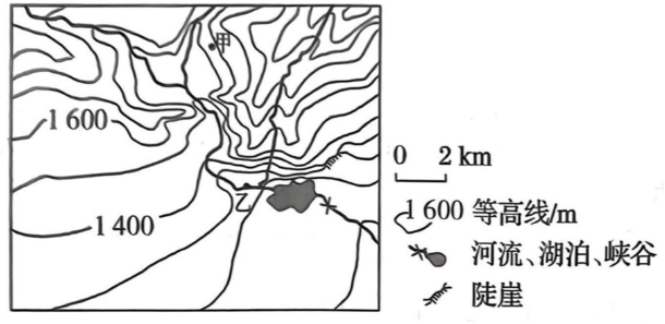 25.如图为某区域等高线地形图,甲处与其西侧的河谷盆地之间存在明显的山谷风。读图完成4~6题。